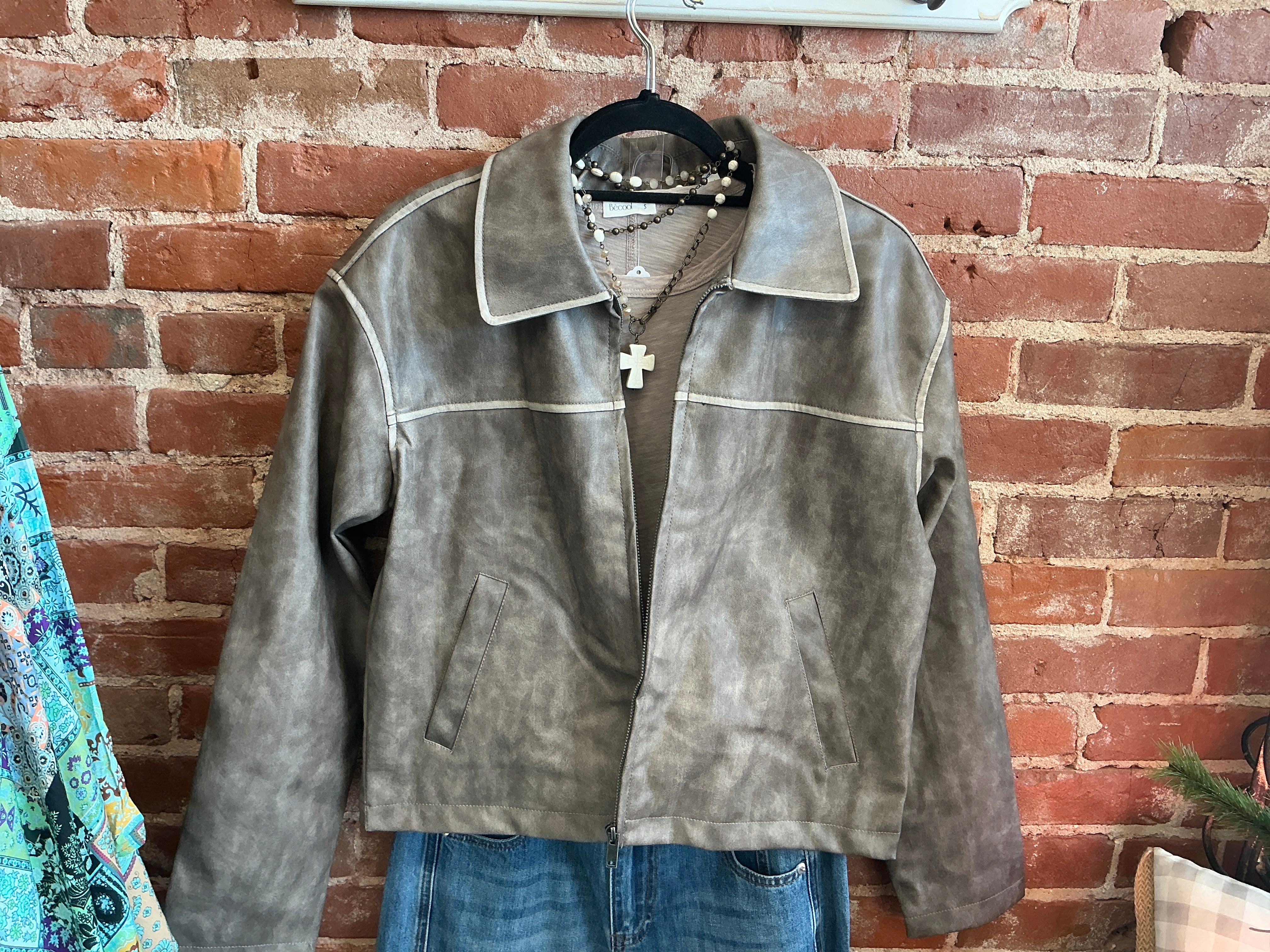 2 Tone Washed Faux Leather Jacket